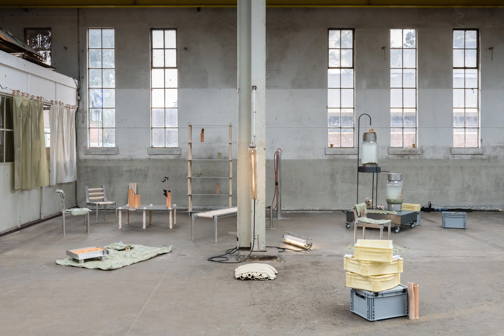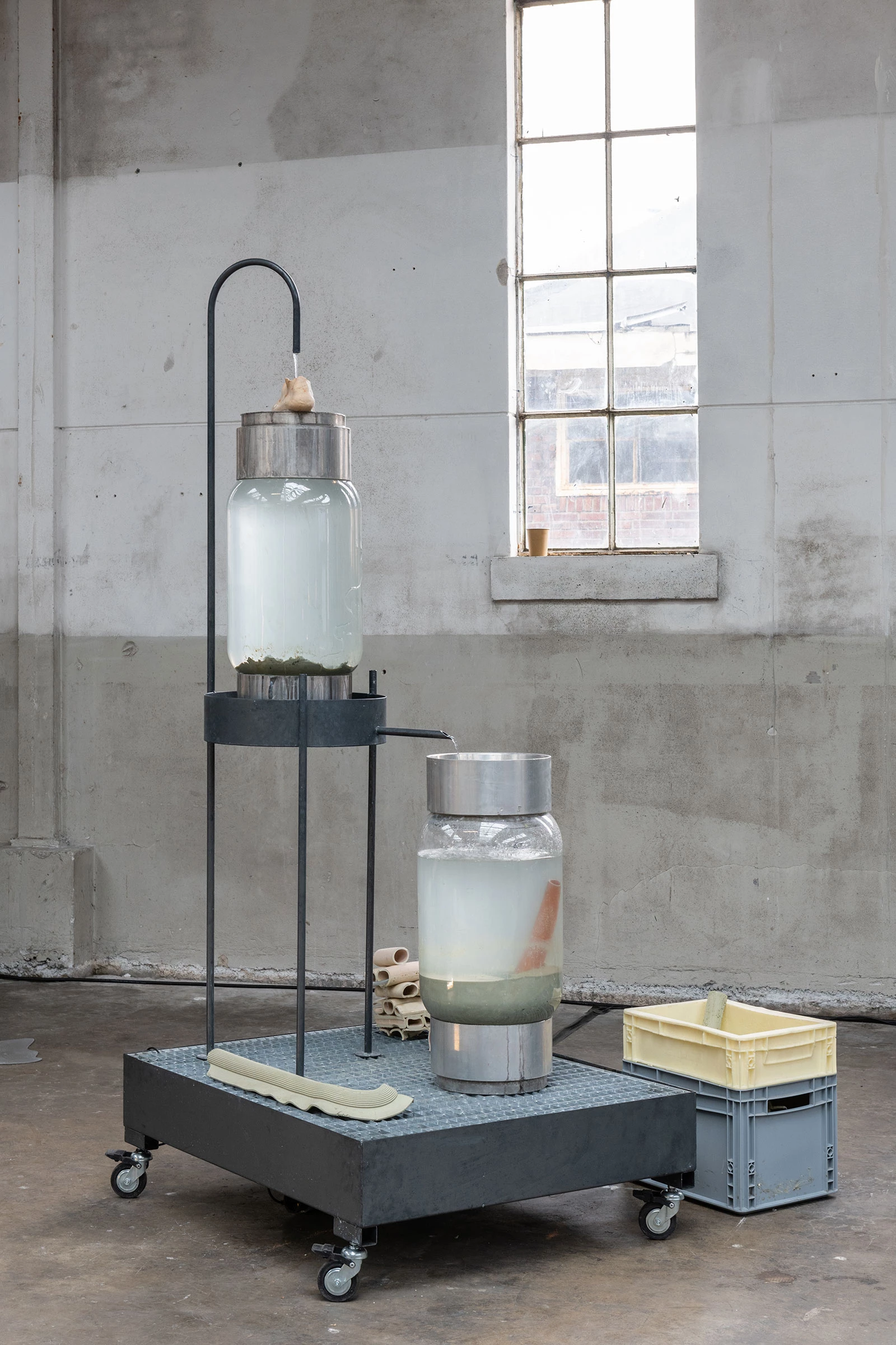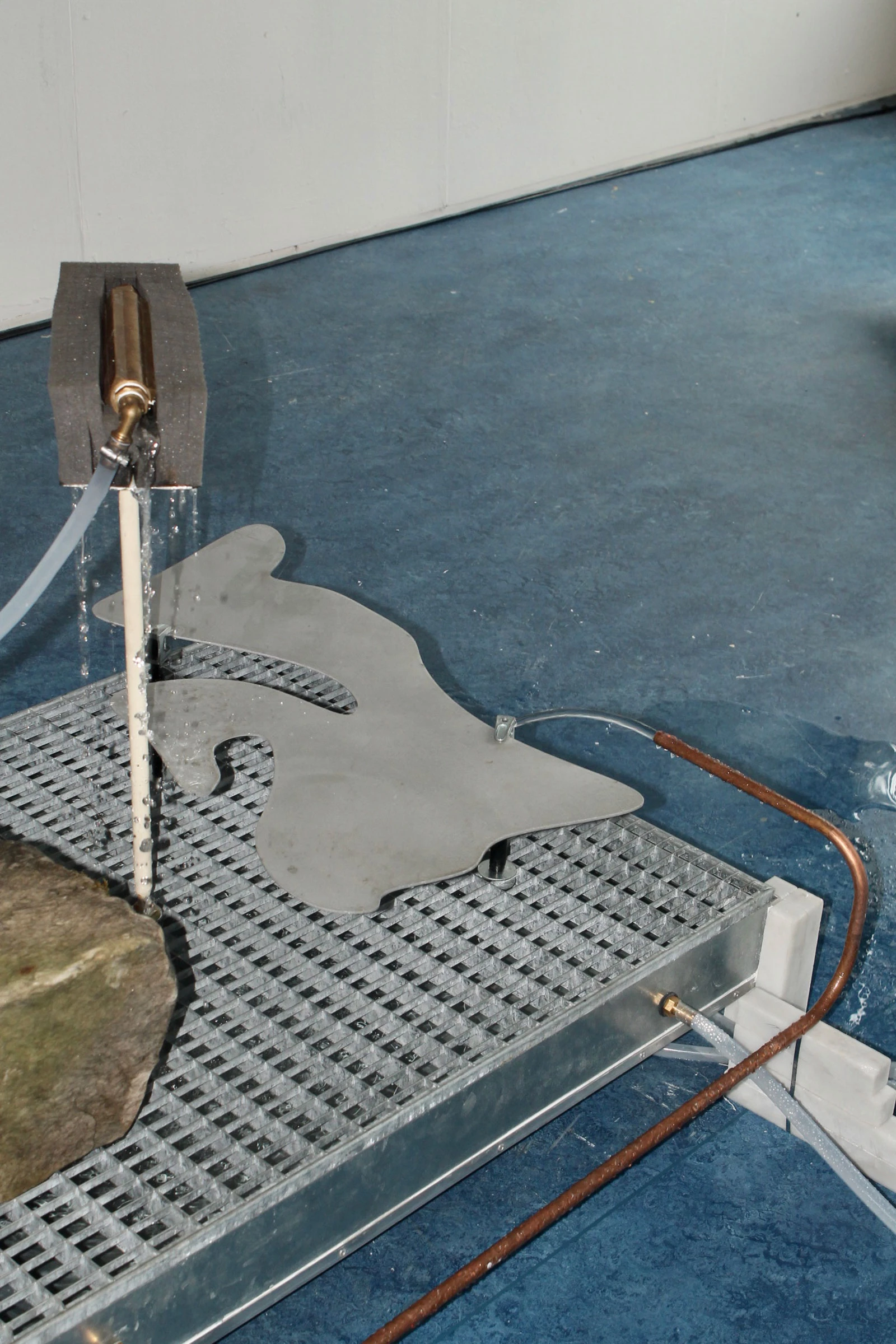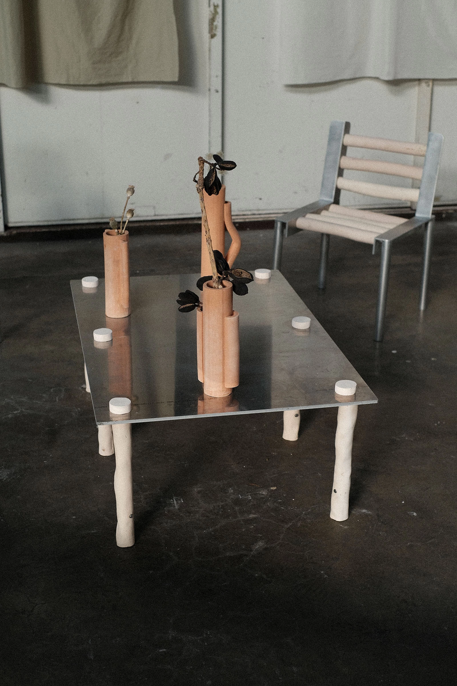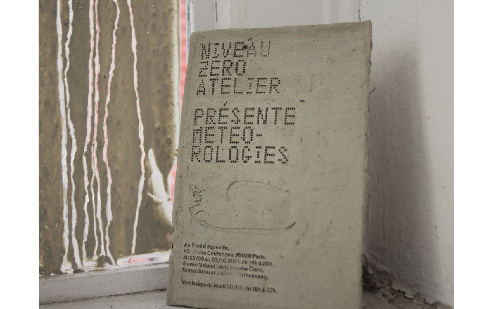Niveau Zéro Atelier presents 'Météorologies'. As a result of a year of work spent listening closely to the bad weather, 'Météorologies' operates as a standpoint as much as a gesture of invisibility. It is structured around two spaces. In the first one, we discover a collection of furniture (shelves, bench, chairs, table, carpet, game board, water fountain...) which articulates togeth two materials: reused aluminum and clay collected in the in the construction sites of the Grand Paris. The second one displays the elements which surround these object’s manufacture: raw earth deposit, clay at rest, aluminum totems and edible materials... On the reverse side of a standardized and polished space, they reveal the anatomy of a working process charged with a dimension which exceeds the field of the visible, paying attention to micro-events, and potential failure. Thus, the group affirms the coexistence of two types of thoughts. The one that is rational wants to foresee, to form and constrain the materials. The other, more magical, instills the reality with a productive uncertainty, and injects subjectivity into the functional discourse.