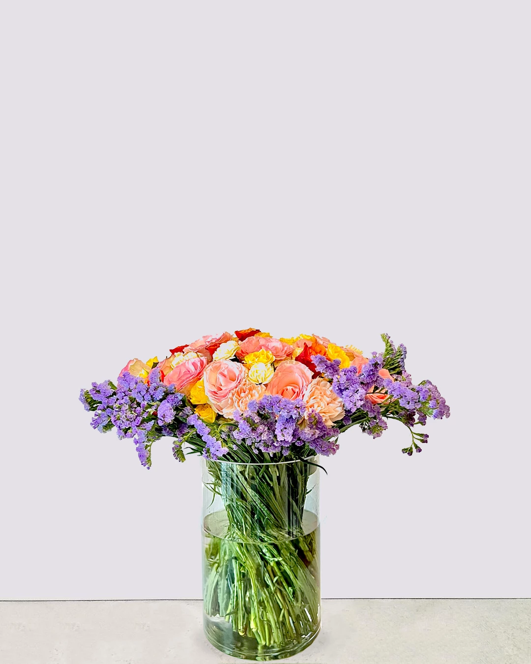 Disque Bleu répond cet objet par un bouquet de fleurs français classique à ceci pres que sa surface n'est pas ronde mais plate, et rappelle un le jardin royal. L'arrangement florale se compose de roses portant le nom d'André le Nôtre. Toutefois, ces roses nobles sont complétées par des œillets : une fleur qui incarne à la fois l'amour et la tristesse. Cultivés dans les cendres du palais des Tuilerie après la commune, ils rendèrent au public ce qui a longtemps été caché, mais rappellent également des siècles d'injustice. Cette dualité résonne avec l'ambiguïté de l'objet Niveau Zero Atelier, qui est en fin de compte une lettre d'amour sans adresse, légèrement sarcastique, contenant l'ADN de "la ville de l'amour", impossible à envoyer ou à recevoir."